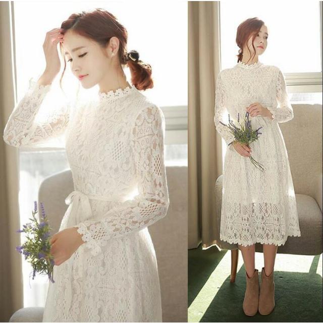 ホワイト レース 長袖 ワンピース タイト ミニ 秋冬 ドレス ワンピース Buyma